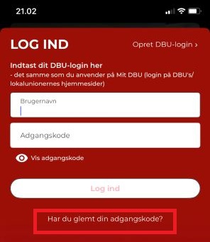 Hvis du kender dit DBU-login, så logger du ind med dette. Hvis du derimod ikke kender det, så brug evt. “glemt adgangskode” funktionen (se billede).