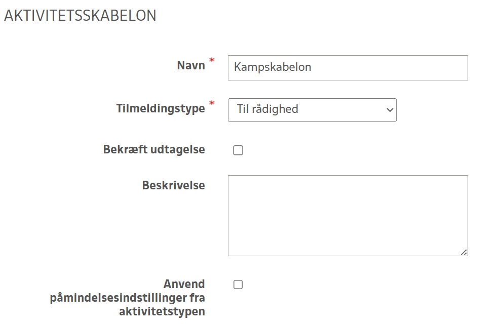 Denne vejledning beskriver hvordan du opretter en aktivitetsskabelon, som kan benyttes når du efterfølgende tilføjer DBU turneringskampe til Kampklar for dit hold.